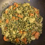 Reteta de mazare este destul de simpla. Pun la fiert separat 1-2 cartofi si 1 morcov. Calesc ceapa intr-o tigaie. Adaug mazarea de la cutie sau inghetata peste ceapa calita si adaug legumele fierte cu ceva zeama rezultata din fiertura. Apoi astept sa scada zeama si in timpul acesta cartoful o sa isi lase si el o consistenta care va lega amestecul mai bine si va iesi o mancarica delicioasa de mazare. Adaugam sare, piper, boia si un pic de sos de rosii. Carnea fiarta am adaugat-o la final peste aceste legume. In ambele cazuri copilul a apreciat foarte bine felul de mancare si este mare fan al mancatului bob cu bob.
