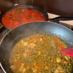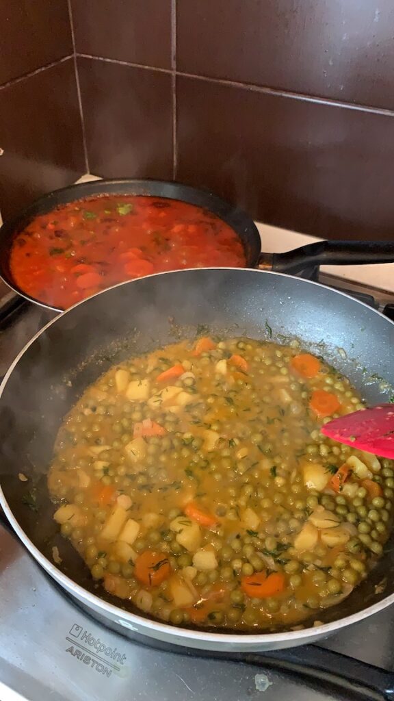 In alta zi am fiert prea multa carne de pui doar pentru ciorba si am inceput sa mai facem si alte feluri secundare de mancare. Adica am pregatit si o mazare cu una din pulpitele de pui, iar alta data am facut pilaf pe langa supa. Ca la mama acasa, as putea spune, dar fara sa fi invatat de la mama sa gatesc.
