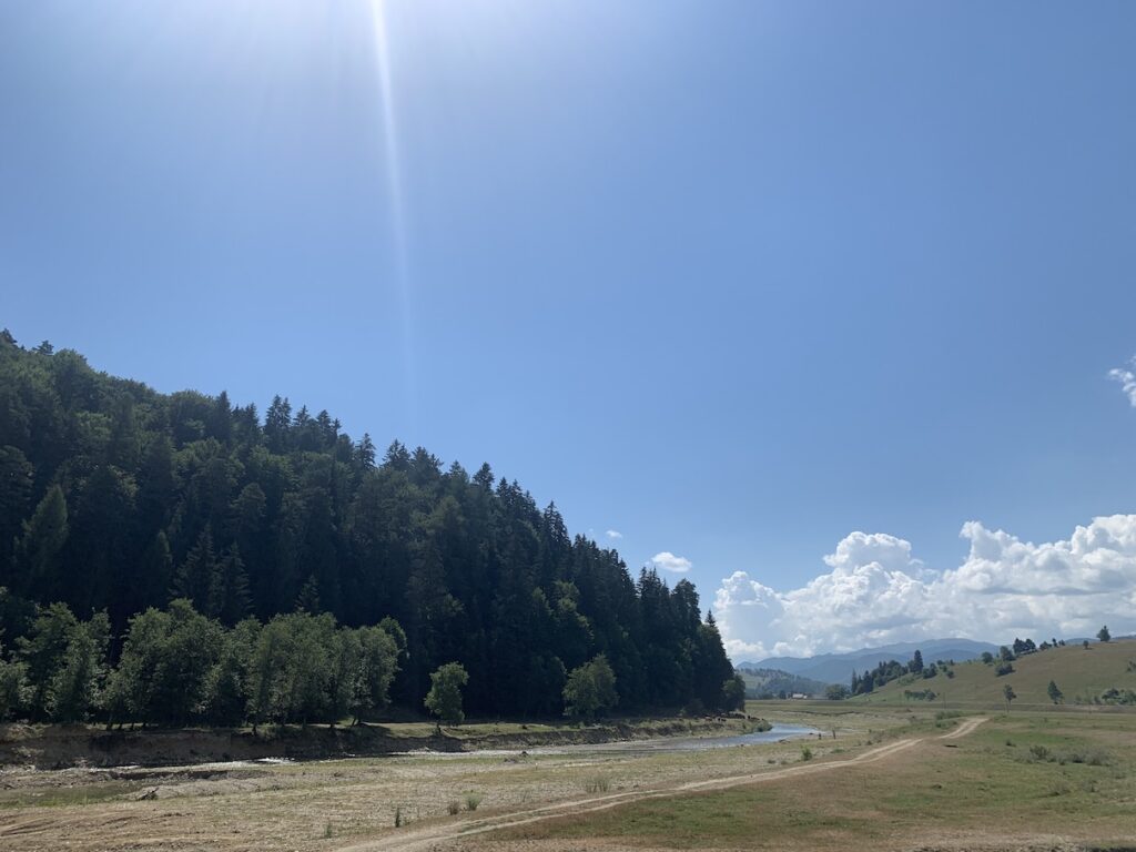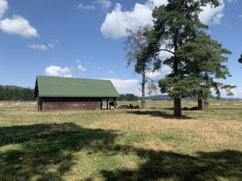 La capatul tarcului de zimbri, daca tii poteca, gasesti un leagan si o zona de odihna. Iar dincolo de gardul natural trece nestanjenit raul Buzau. Si acolo mi-am zis ca e de noi in zilele calde de August. Cel mai frumos si salbatic peisaj! Am simtit linistea aceea a apei care curge orice i-ar aparea in cale, oricine s-ar infrati cu ea pe drum. Si poteca te imbie parca sa pasesti cu picioarele in apa limpede a raului. M-am abtinut caci cel mic e mai neinfricat ca mine si ar fi vrut o aventura si mai mare. L-am lasat doar un pic sa puna piciorul in apa si sa se spele pe manute.